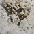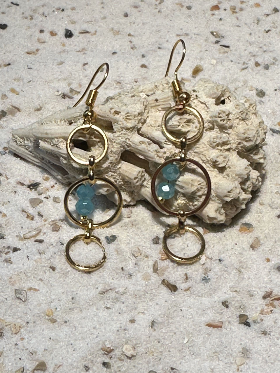 Je zwei hellblaue Glaswürfel und eine durchsichtige runde Glasperle.