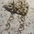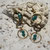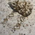 Dunkelgraue Stoffblüten gefasst in kleinen goldfarbenen Brisuren.